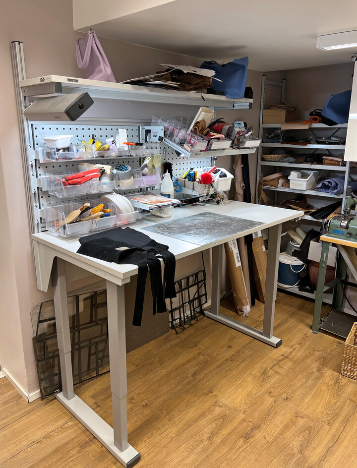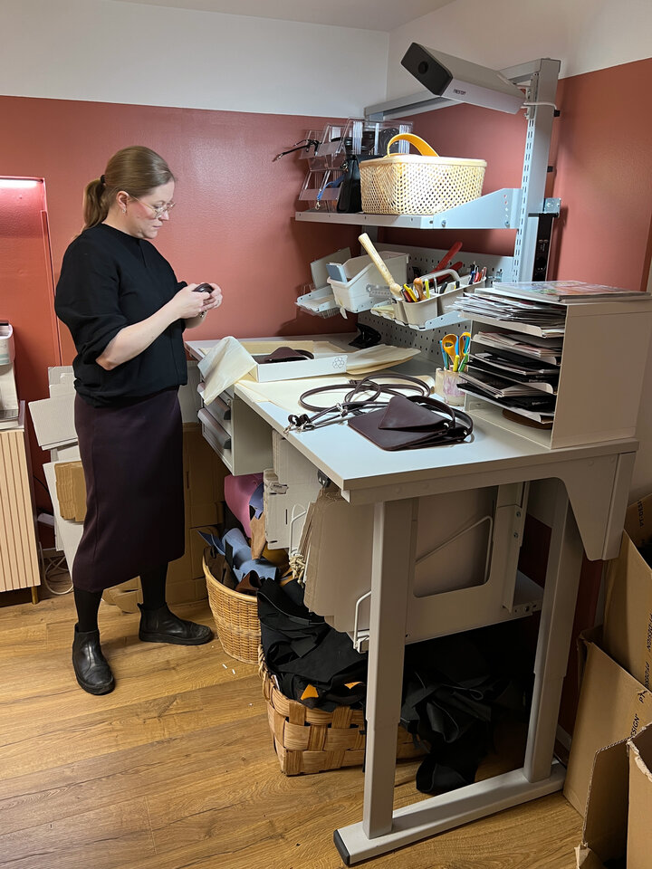 PIHKA:lla valmistetaan erikokoisia laukkuja ja koosta riippumatta jokainen tuotteista vaatii saman tason tarkkuutta. Työskentelykorkeus mukautuu käsiteltävän tuotteen koon mukaan, jolloin työpisteet voidaan säätää optimaaliselle korkeudelle jokaista tuotetta varten.
