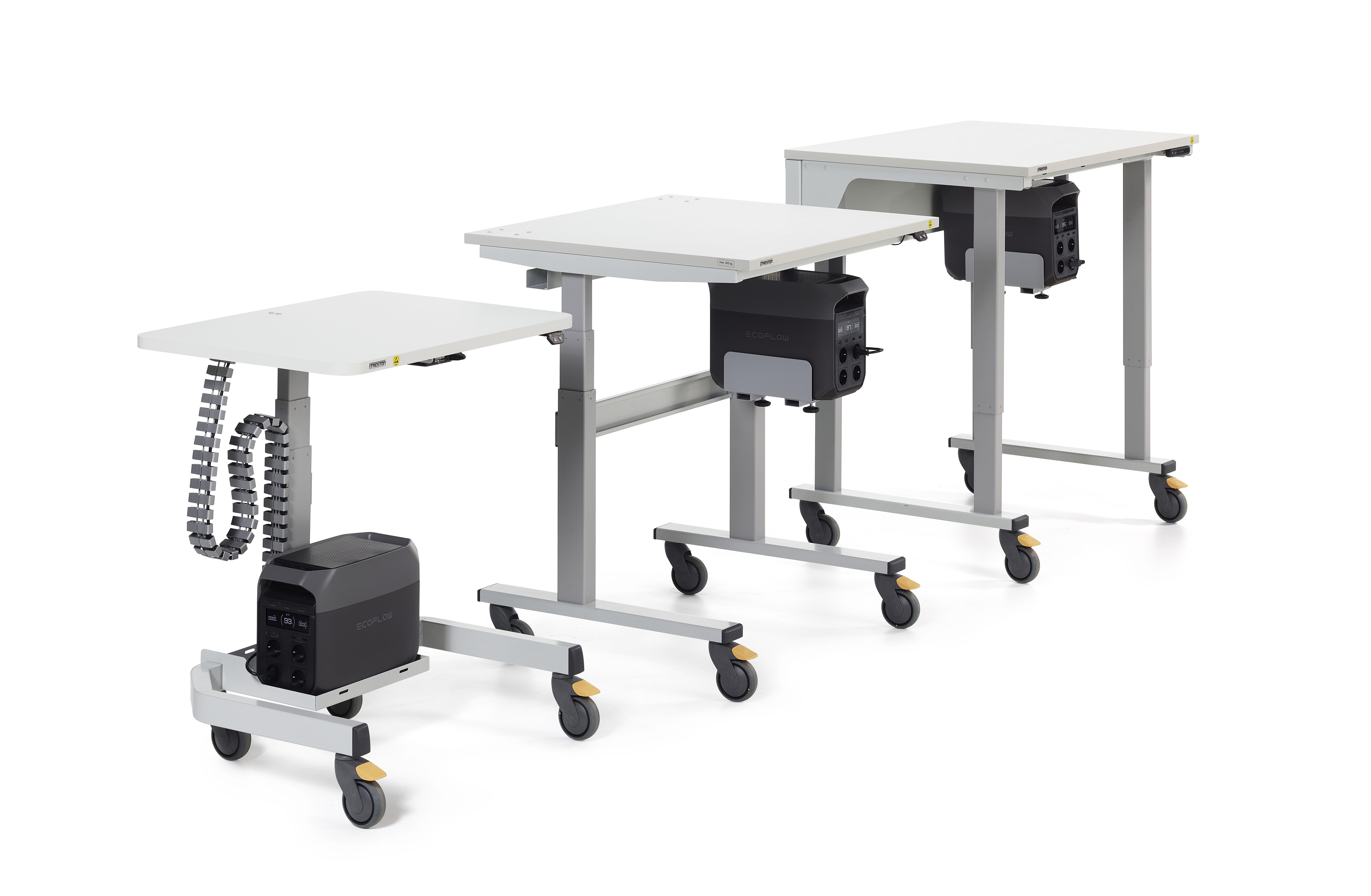 - Treston PowerX TED: Liikuteltava ja virransyötöllä varustettu versio TED työpöydästä. Tarjoaa suuremman työskentelypinta-alan sekä joustavuutta erilaisiin työtehtäviin ja laitekokoonpanoihin.